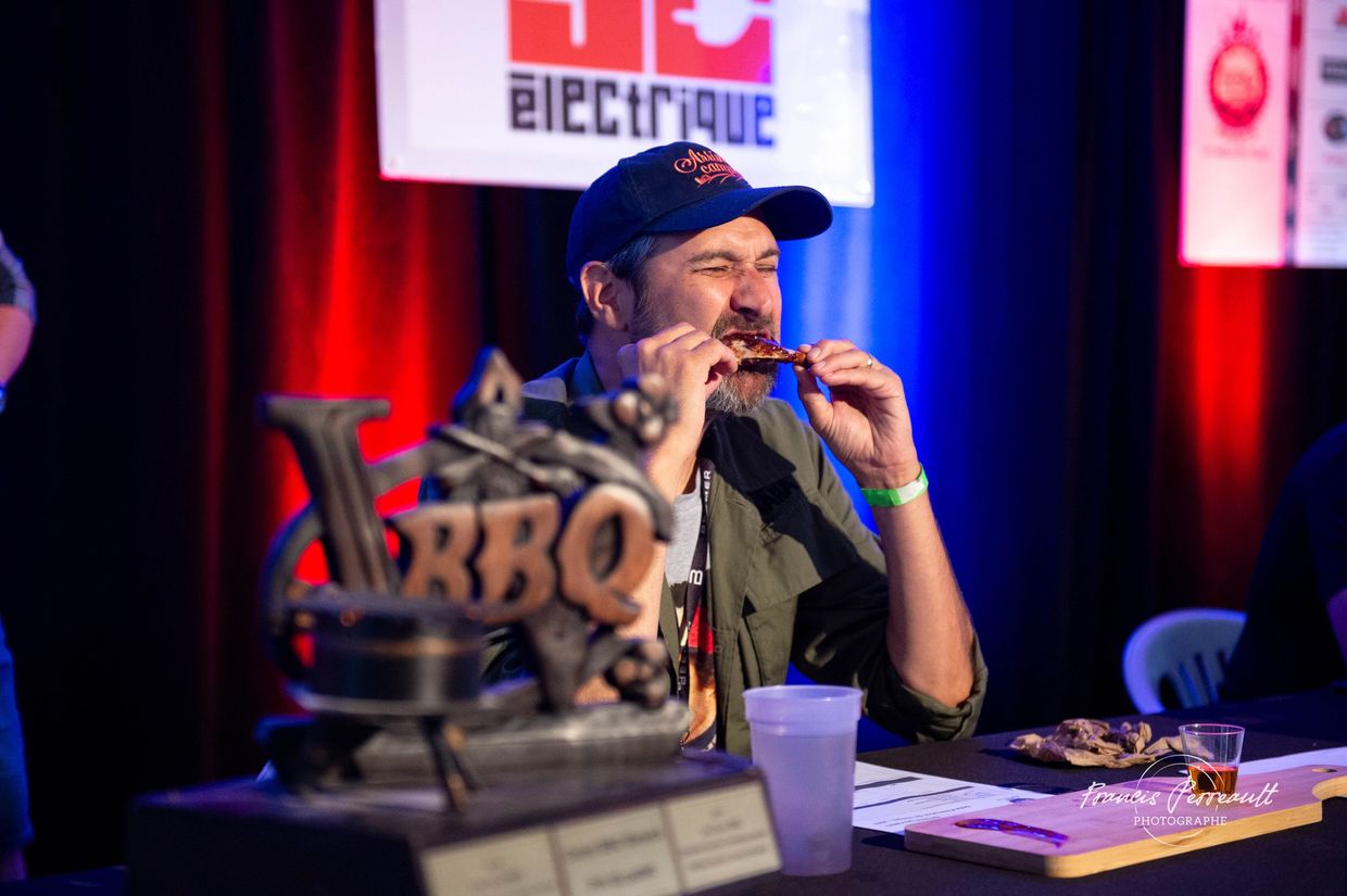 La bataille des chefs regroupe huit équipes de quatre personnes qui s’affrontent afin d’offrir au public et aux juges leurs meilleures côtes levées. Dès 7h, les équipes reçoivent approximativement quarante côtes “Baby back rib” qu’elles devront minoucher tout au long de la journée. Ils fournissent tous leurs ingrédients, carburant et machine de cuisson. On peut vous dire qu’il y en a des crinqués, des inventeurs de machines plus grosses, plus belles et plus performantes les unes que les autres. Et que dire des “ribbers” qui parfois iront même jusqu’à mariner leur bois de cuisson. C’est le véritable spectacle du Grand BBQ ; une bande de trippeux au travail pour satisfaire les palais les plus exigeants. Et la récompense ? L’honneur et le droit de narguer ses voisins l’année suivante !